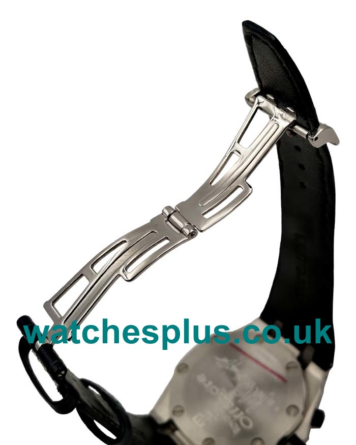 The UK AAA top Audemars Piguet Royal Oak Offshore replica watches feature white checkered dials, steel cases, and black leather straps, which looks casual while ensuring comfort. The best copy watches have three subdials, a date window, and tachymeter scale around the dial.