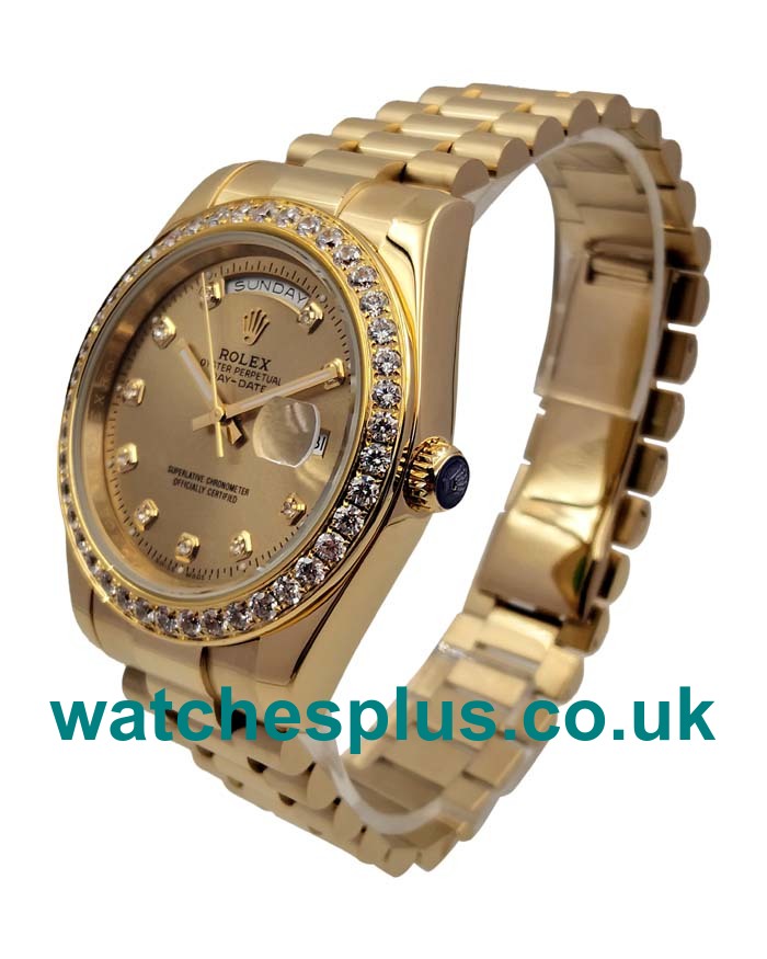 Elegant and tasteful, the best 1:1 fake Rolex Day-Date UK will absolutely fit you perfectly at many formal occasions. The high quality and low price of the Swiss made replica Rolex watches have attracted a large number of watch lovers who can't afford the luxurious real models.