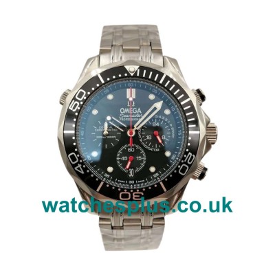AAA quality fake Omega Seamaster watches UK feature the black dials and 44 mm stainless steel cases, which are perfect for men. Powered by the top quality quartz movement, our cheap Omega replica watches are precise and reliable.
